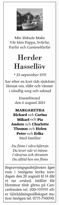 Fadern Olof Sterner Hassellöv dör 1983-03-19 Hasselösund, Smögen, O [1] |